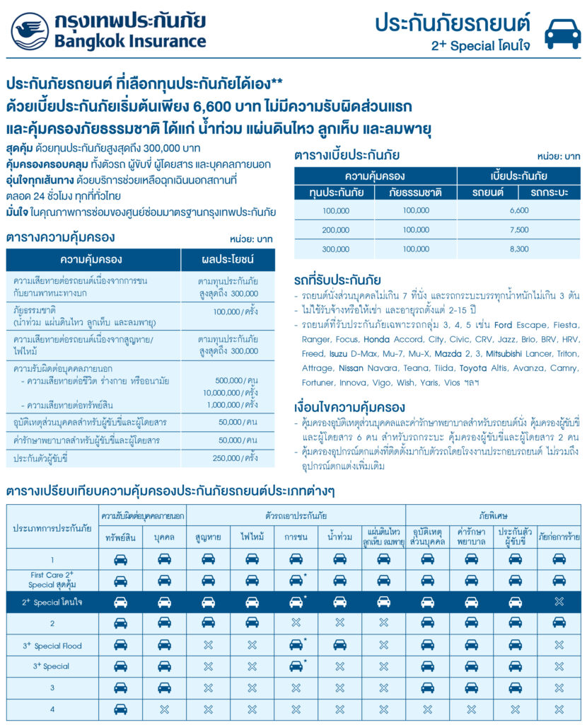 ประกันภัยรถยนต์ 2+ Special โดนใจ กรุงเทพประกันภัย