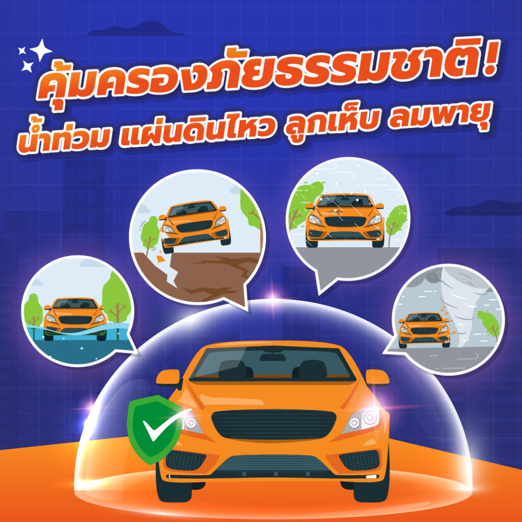 • ไม่มีความรับผิดส่วนแรก และ คุ้มครองภัยธรรมชาติ ได้แก่ น้ำท่วม แผ่นดินไหว ลูกเห็บ และลมพายุ
